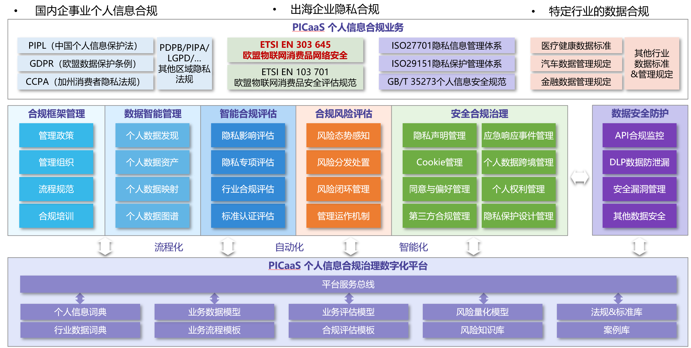 普瑞数安依托于业界领先的PICaaS个人信息合规治理数字化平台,为企业提供的主要产品服务包括:消费电子产品出海303 645认证服务,安全合规咨询专业服务、个人信息合规管理、数据安全防护解决方案等,在电子消费品、互联网医疗、车联网、金融证券等行业适配行业管控要求和企业自身安全诉求,与头部客户展开合作,积累了丰富的行业场景和模板,为客户提供专业的数据合规与安全服务能力。