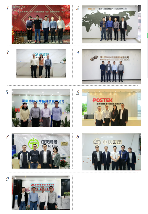 上班伊始,我会执行会长杨伟奇、秘书长郑华兵率秘书处一行人陆续到会长单位中国移动通信集团广东有限公司深圳分公司、副会长单位高新兴物联科技有限公司、副会长单位深圳市远望谷信息技术股份有限公司、副会长单位深圳市中兴视通科技有限公司、副会长单位深圳市航天华拓科技有限公司、副会长单位深圳市博思得科技发展有限公司、副会长单位深圳市中天网景科技有限公司、副会长单位中亿(深圳)信息科技有限公司、副会长单位深圳市曼联电子有限公司开展新春走访拜年活动,并向会长及副会长单位集中汇报协会工作,畅谈计划,力图在协会的工作开展、企业的发展动态、活动的举办等方面能形成合力。
