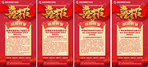 本月,新发展4家企业加入协会大家庭:欢迎深圳市曼联电子有限公司成为我会的副会长单位;欢迎深圳鲸孚科技有限公司和广州驿通智能科技有限公司成为我会的理事单位;欢迎深圳核芯物联科技有限公司加入我会的会员单位。