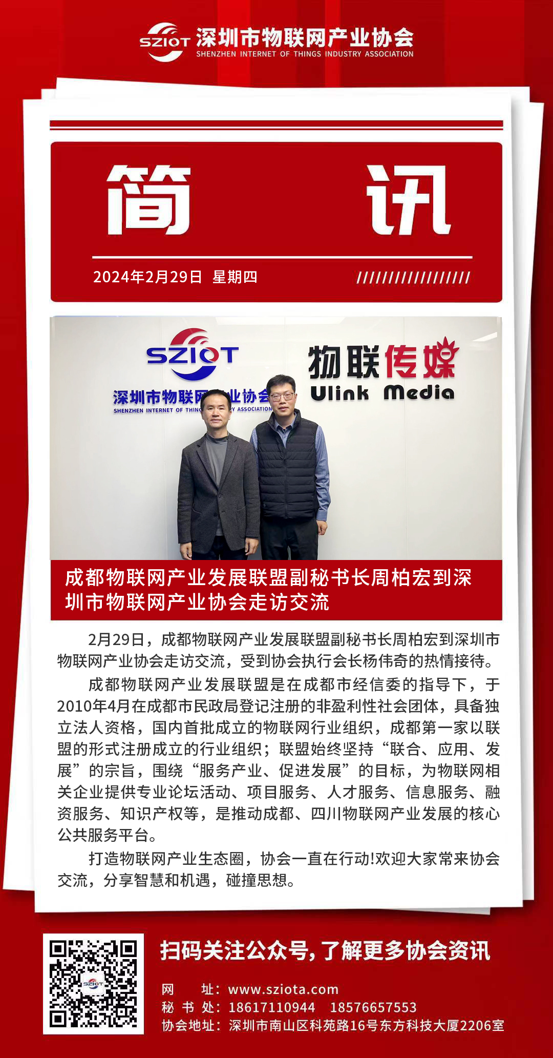 · 成都物联网产业发展联盟副秘书长周柏宏到深圳市物联网产业协会走访交流