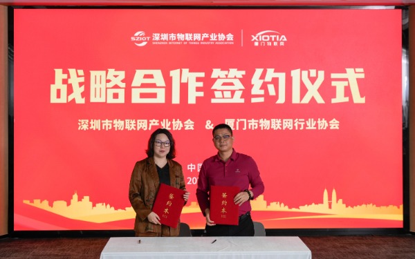 会上,深圳市物联网产业协会秘书长郑华兵与厦门市物联网行业协会秘书长雷婕代表两协会签署战略合作协议。两协会的战略合作将是一次跨越地区的相互赋能,标志着两地物联网产业的深度融合,共同推动物联网行业的繁荣发展。