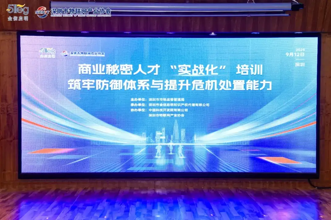9月12日下午,由深圳市市场监督管理局主办、深圳市金信启明知识产权代理有限公司联合深圳市物联网产业协会共同举办的 “商业秘密人才‘实战化’培训:筑牢防御体系与提升危机处置能力” 活动,在线上直播平台与线下南山区科技园中科研发园圆满举办。国家高新技术企业、知识产权优势及示范企业的知识产权负责人与骨干员工齐聚现场,共学实战知识,共筑保护防线。