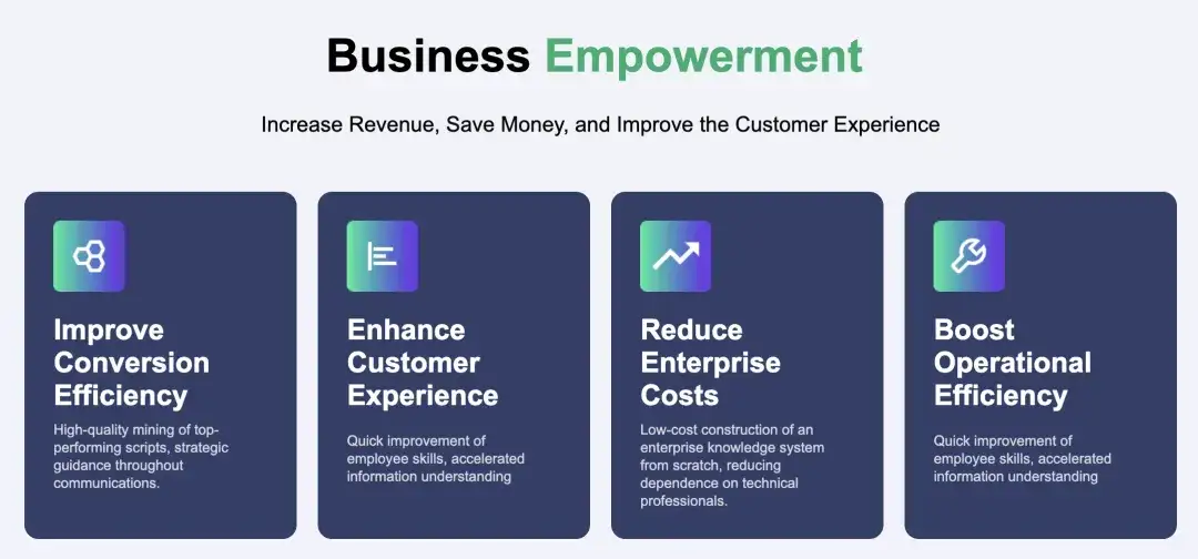 将大模型和业务场景深度融合,覆盖全球市场包括智能客服、营销、质检、洞察等在内的各类业务场景,强化复杂业务场景的适应和效能,实现服务体验与营销转化双提升。