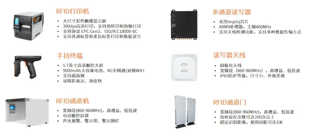 ·RFID硬件设备:提供RFID工业打印机与智能手持终端,方便工作人员高效打印标签、批量盘点资产。