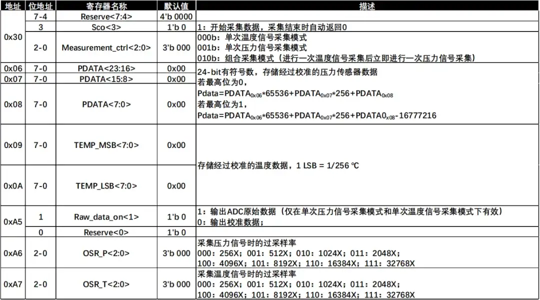 值得一提的是,HPSxxxGSR系列传感器还支持开发者通过高速I2C接口(I2C时钟频率高达400kHz,I2C设备地址默认为W:11111111 / R11111110)读写寄存器进行高自由度的自定义设置,例如: