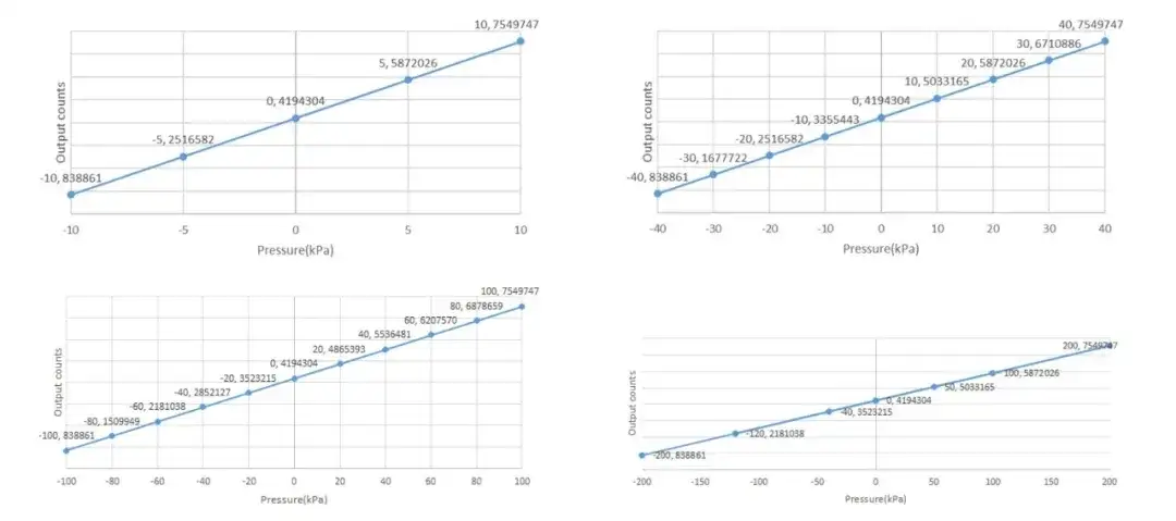HPSxxxGSR系列传感器具备优异的线性度表现,如下数字输出特性曲线图(AD值与压力值的关系曲线)所示,在规定的压力测量范围(Pmin至Pmax)内,AD值与压力值呈“严格的线性对应关系”,非线性误差极低,可有效提升终端产品的压力测量或控制精度水准。