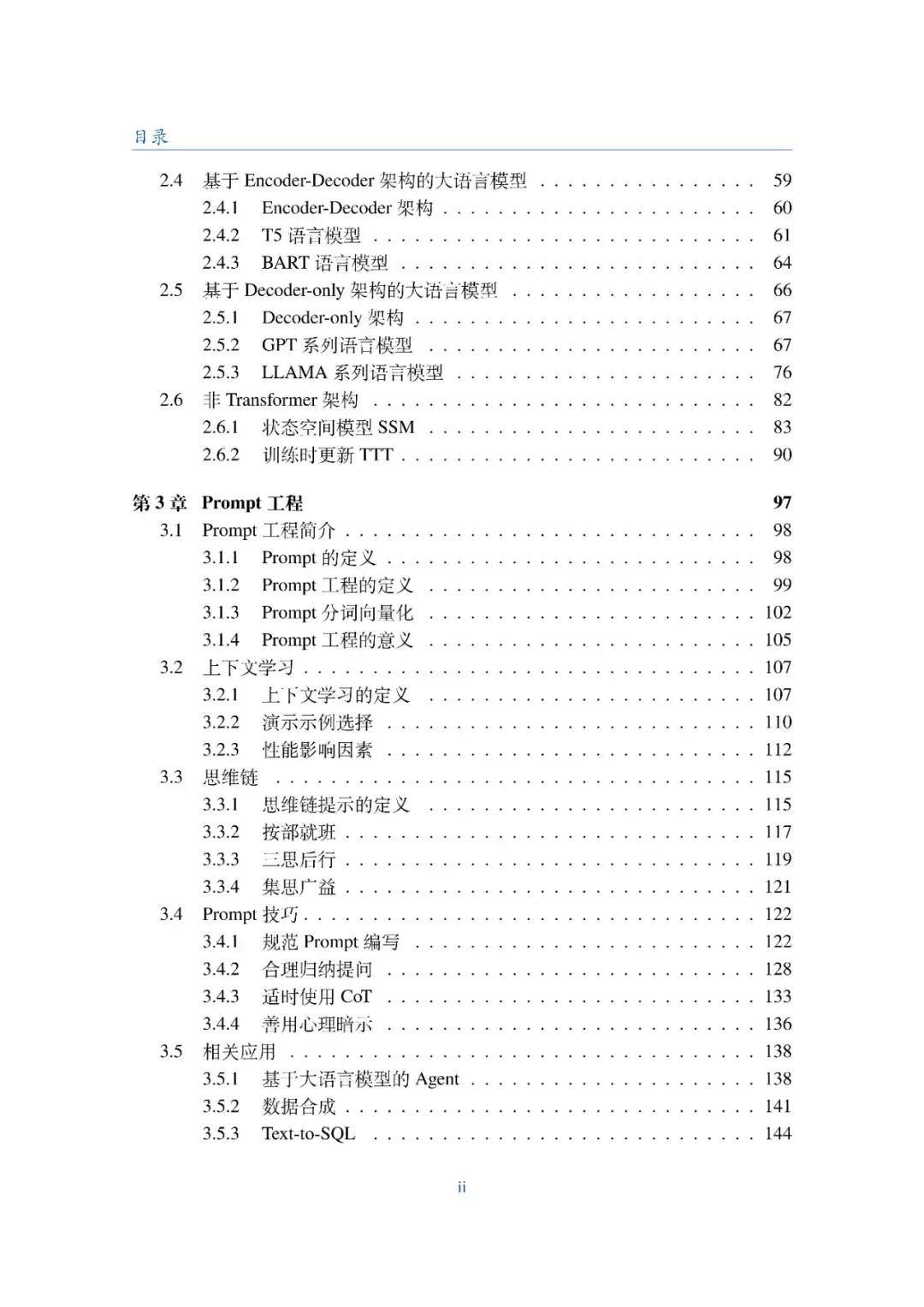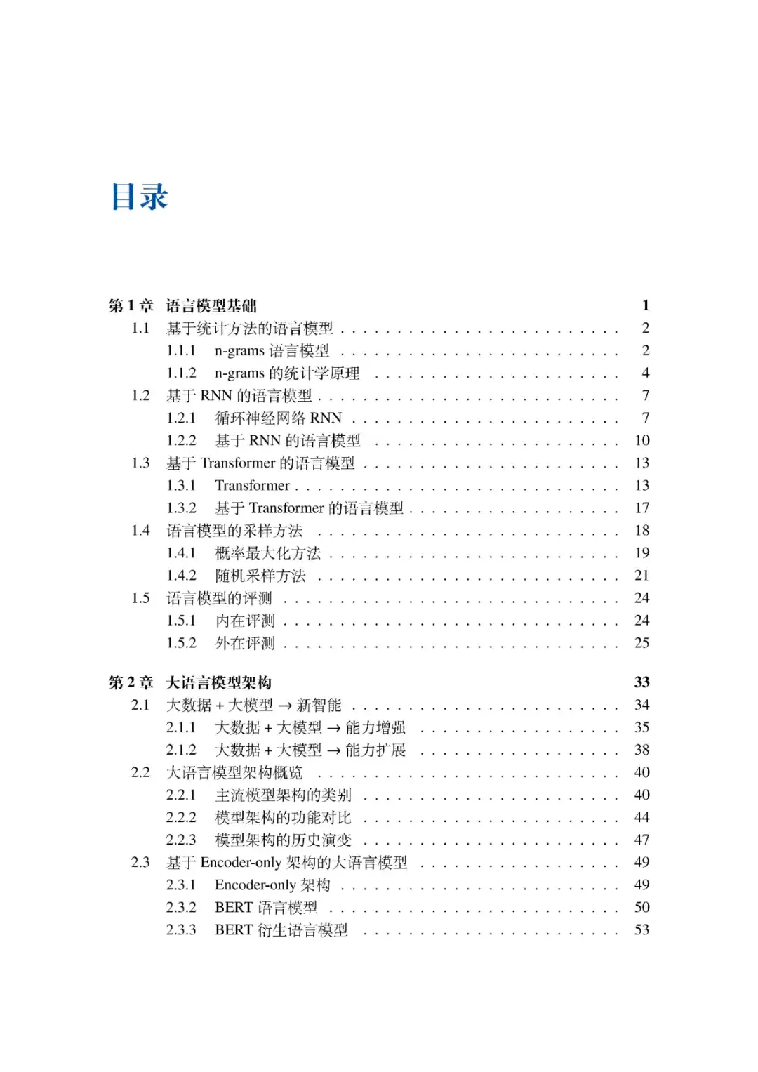 本书包括传统语言模型、大语言模型架构、提示工程、高效参数、模型编辑、搜索增强增加生成等六章内容。为便于阅读,每章分别以一种动物为内容为背景,对具体技术进行说明,故本册以六种动物作为封面。