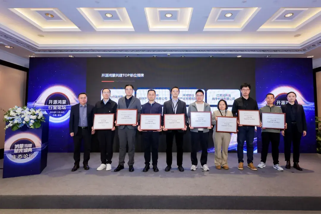 在开源鸿蒙行业分论坛的荣誉表彰环节,九联开鸿凭借在生态共建中的突出表现与技术贡献,成功斩获“开源鸿蒙TOP共建单位”殊荣,代码贡献量位居行业前列,用强劲实力彰显了在开源鸿蒙生态中的核心地位。