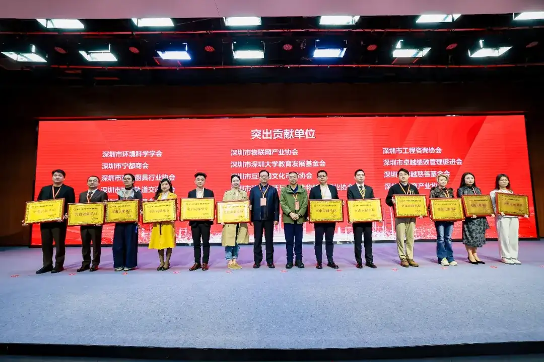岁暮迎新,智启未来。12月29日,深圳市社会组织总会六届六次会员大会暨社会组织智库年会(第一场)召开。活动聚焦年度工作部署与数字化赋能,汇聚近500名会员单位代表及行业精英共赴盛会,共忆耕耘硕果,共绘发展蓝图。深圳市民政局党组成员、市社会组织管理局局长李文海,深圳市民政局执法监督处处长戢焕兵、社会组织登记处处长白洪春,总会联合党委第一书记高林,总会监事长王琛等出席会员大会。深圳市物联网产业协会秘书长郑华兵出席大会,现场领取“突出贡献单位”荣誉牌匾。