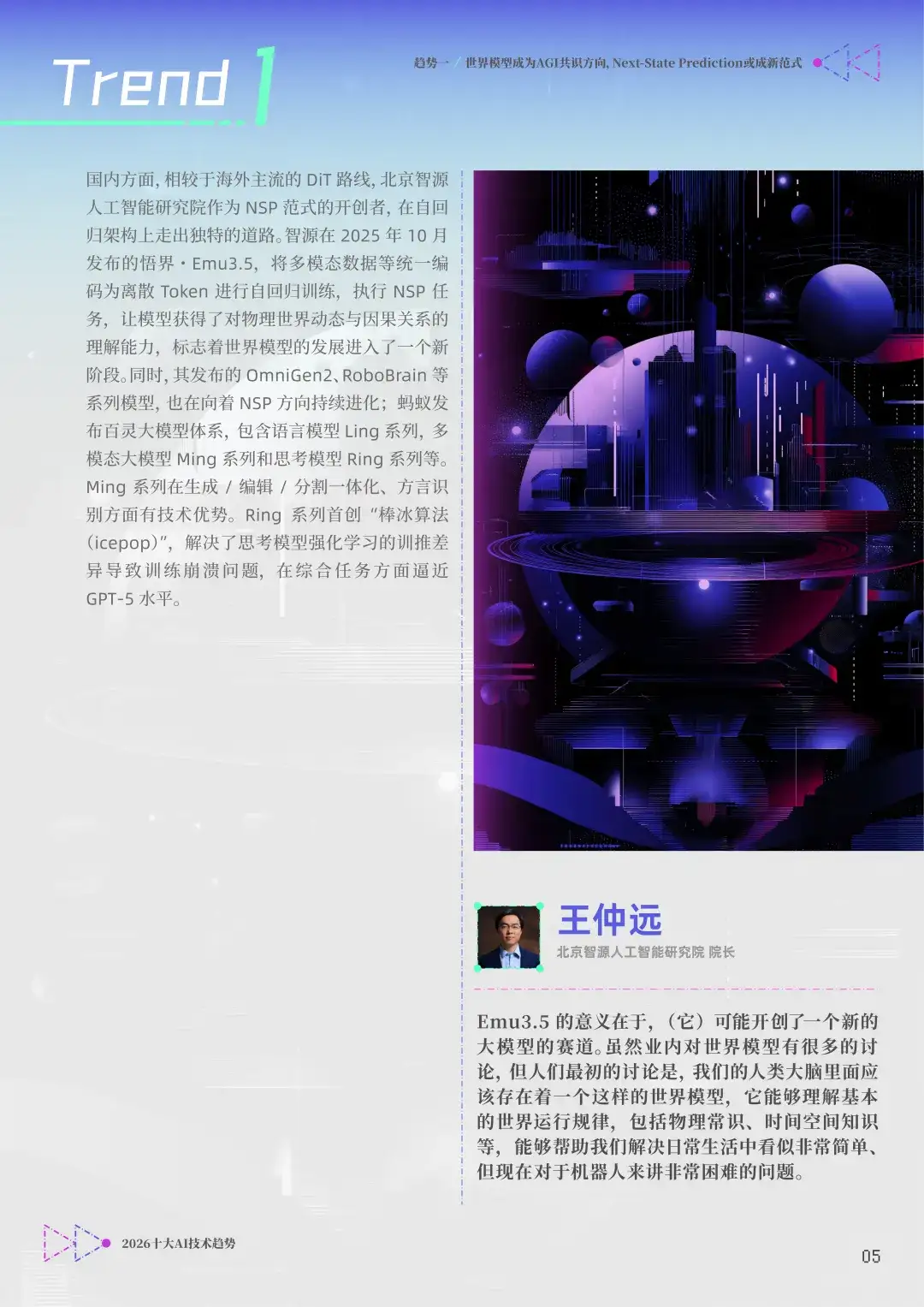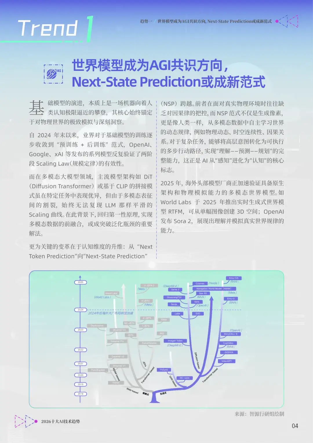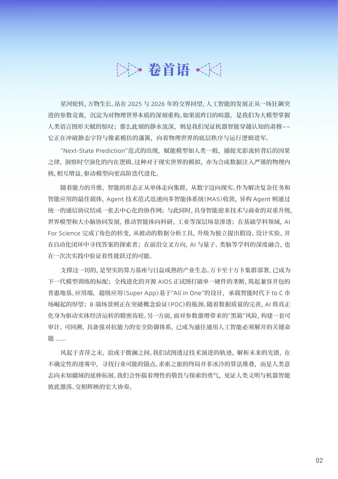 《2026年十大AI技术趋势报告》由北京智源人工智能研究院发布,聚焦AI从参数竞赛迈向物理世界重构的关键阶段。