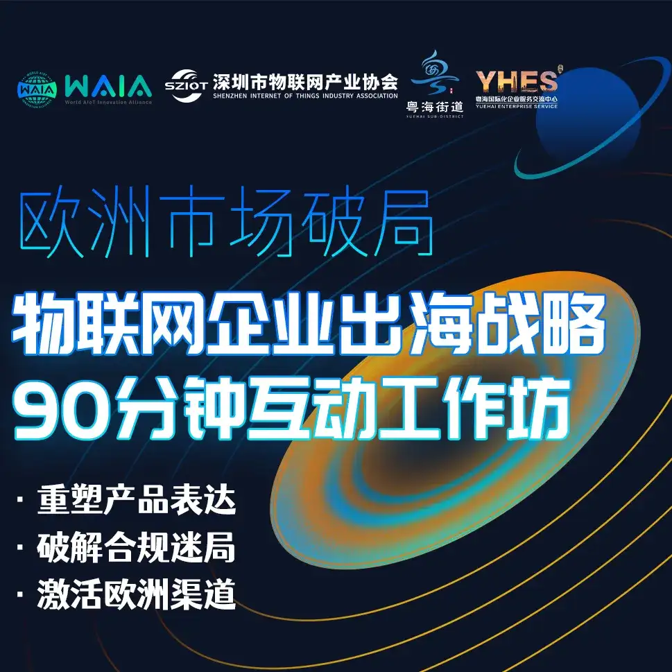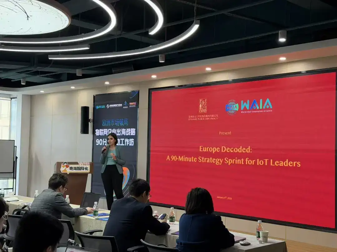 当中国智造遇上欧洲高价值市场,如何打破产品适配壁垒、破解合规迷局、激活优质渠道?2026年1月9日,由WAIA联盟、深圳市物联网产业协会、南山区粤海街道办事处联合主办,粤海国际化企业服务交流中心协办的“欧洲市场破局 —— 物联网企业出海战略90分钟互动工作坊” 圆满落幕。数十位物联网企业代表们齐聚深圳,以全英文互动形式,解锁欧洲出海的核心密码。