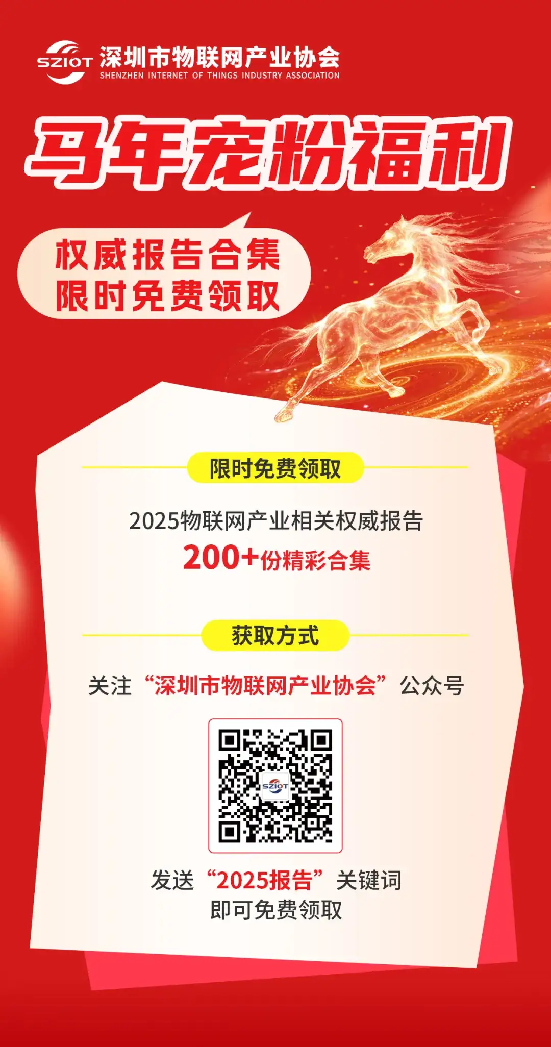 值此丙午马年新春将至之际,深圳市物联网产业协会特别献上年度重磅福利——200+本2025年度物联网产业相关权威报告合集限时免费领取!本次合集涵盖人工智能、智能制造、低空经济、产业数字化与企业出海等核心领域,汇聚全球顶尖机构与行业标杆的深度洞察,为企业决策、创业布局、学术研究提供权威参考。