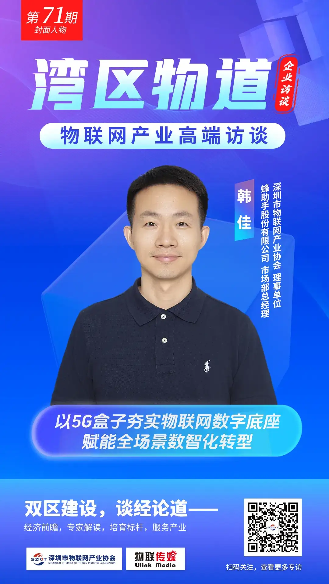 这是『湾区物道』的第71期,本期访谈我们对话了深圳市物联网产业协会理事单位——蜂助手股份有限公司市场部总经理韩佳先生,本次采访,韩总解码了物联网时代下“数字底座”的构建与升级之道,并展望物联网连接产品的未来发展,希望给企业带来更多启发和价值。