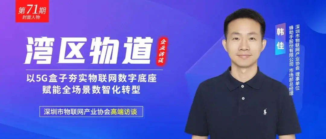 这是『湾区物道』的第71期,本期访谈我们对话了深圳市物联网产业协会理事单位——蜂助手股份有限公司市场部总经理韩佳先生,本次采访,韩总解码了物联网时代下“数字底座”的构建与升级之道,并展望物联网连接产品的未来发展,希望给企业带来更多启发和价值。