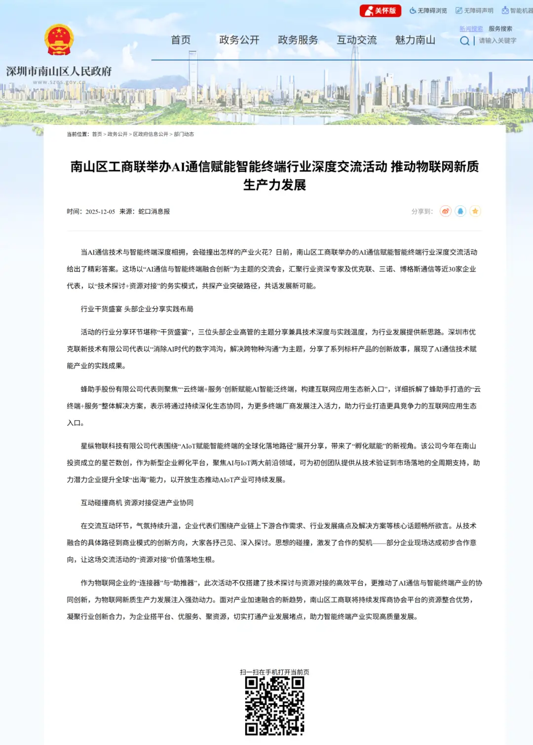 4、喜讯!深圳市物联网产业协会举办的两场活动分别获得南山区人民政府官网报道