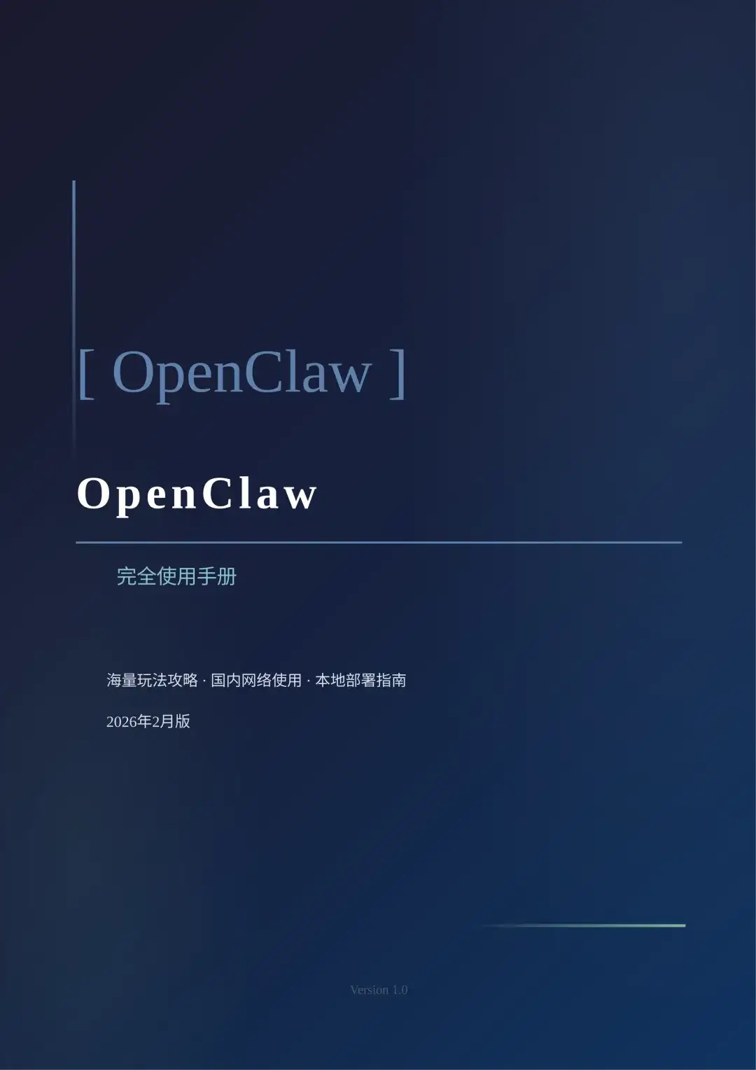 《OpenClaw完全使用手册》是一份全面介绍开源个人AI助手平台OpenClaw的技术文档,涵盖其核心功能、部署方式、使用场景及安全实践。OpenClaw可在本地设备运行,支持通过Telegram、WhatsApp、飞书、钉钉等通讯平台交互,具备文件处理、浏览器自动化、系统命令执行、多平台集成等强大能力。