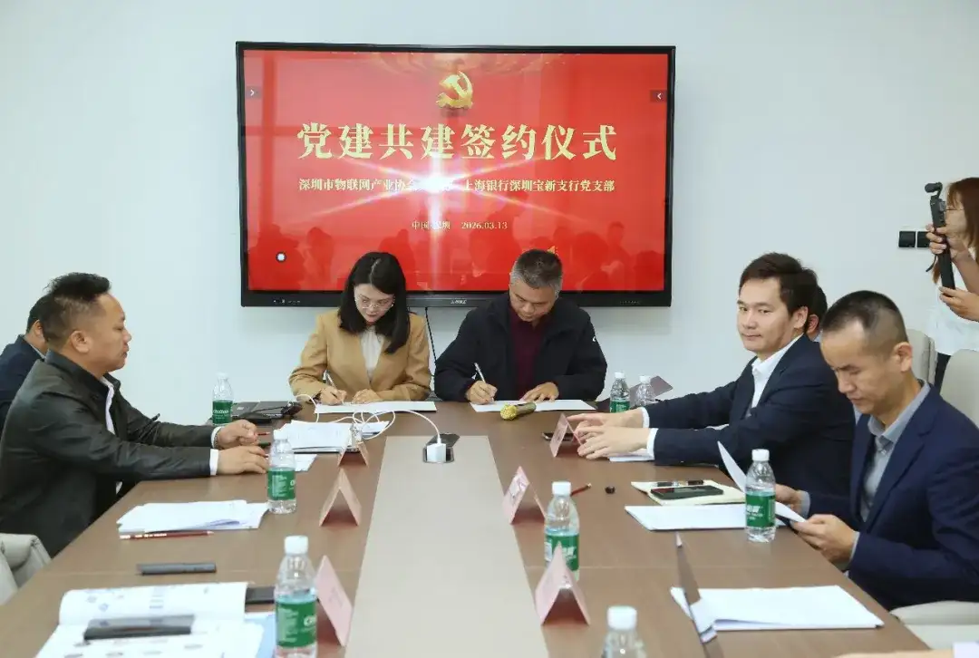 为深入贯彻新时代党的建设总要求,推动党建工作与产业发展深度融合,充分发挥党组织政治优势与组织优势,2026年3月13日,深圳市物联网产业协会党支部与深圳市女企业家商会党支部举行党建共建签约仪式。双方党员齐聚一堂,共话党建引领,共商合作发展,共同开启“党建共建、资源共享、优势互补、共赢发展”的新篇章。