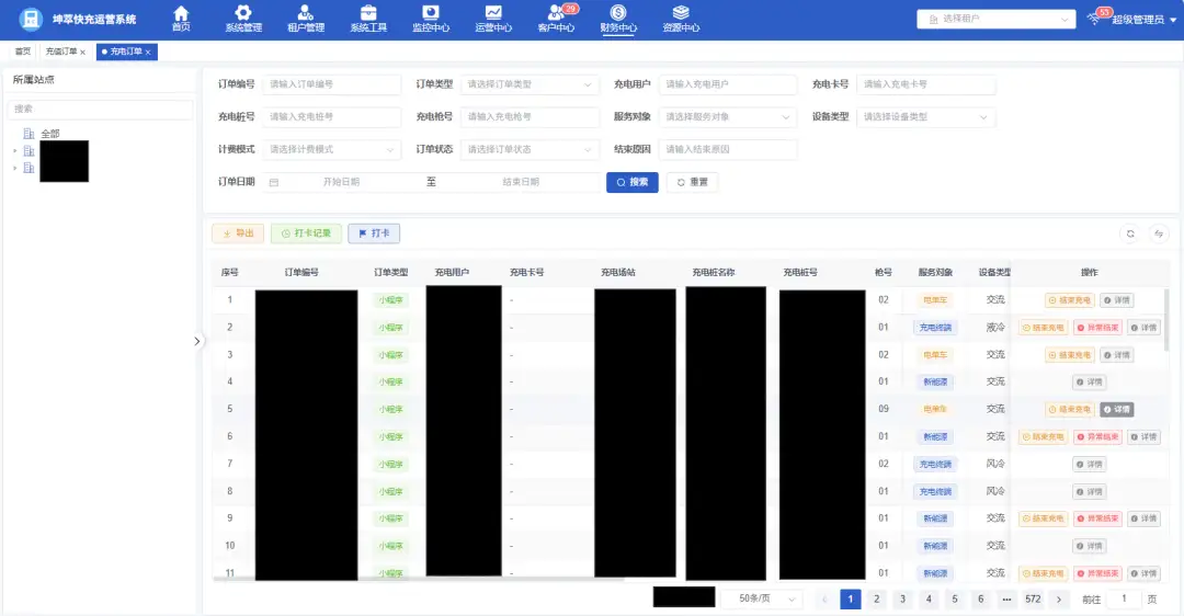 充电桩运营SAAS系统-充电订单
