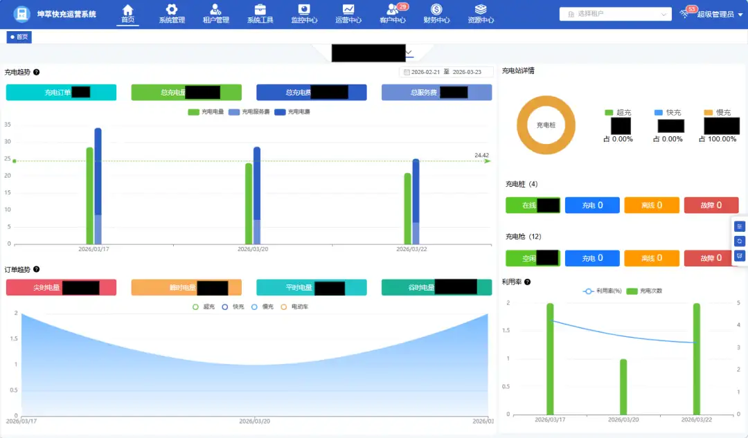 充电桩运营SAAS系统-运营看板