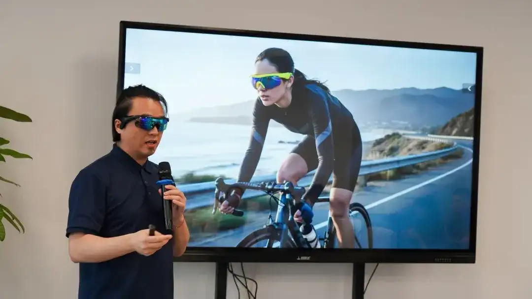 深圳前海无形半导体科技有限公司品牌负责人沙韵涛从运动场景切入,分享了AI智能眼镜的差异化发展路径。他指出,当前智能硬件行业普遍存在“功能堆砌、同质化严重”的问题,而他们坚持做“减法”,聚焦骑行、跑步等运动场景,打造“太阳镜+开放式音频”二合一产品。