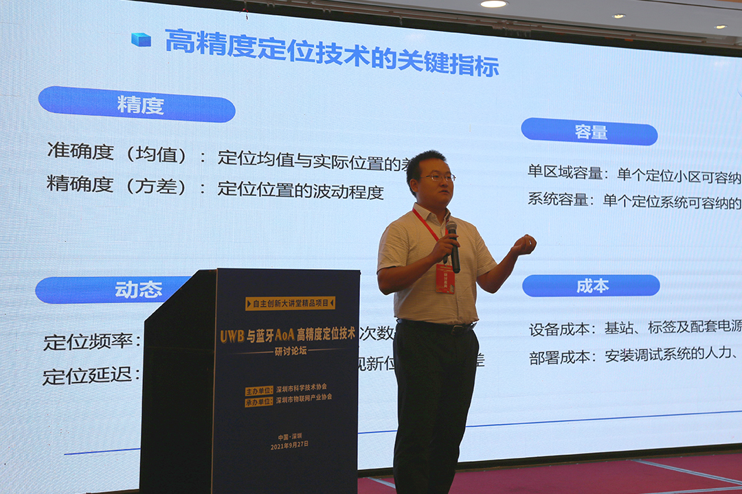 2021年9月27日,由深圳市科学技术协会(以下简称“市科协”)主办、深圳市物联网产业协会承办的“自主创新大讲堂精品项目-UWB与蓝牙AoA高精度定位技术研讨论坛”在深圳东华假日酒店成功举办。在本次研讨论坛上,首次分享了历时几个月,通过调研数百家物联网定位相关企业,分析撰写而成的《中国UWB与蓝牙AoA市场调研报告(2021版)》精华内容,并邀请了6名业内知名的专家学者以“工业应用场景对于高精度定位技术的需求与应用案例”为主题,共同研讨并发表了独到的观点看法,展开了一场亮点不断的思想交流和观点碰撞。本场活动通过与数十家UWB与蓝牙AoA一线企业深度探讨,向外界传递了UWB与蓝牙AoA的一手价值信息。