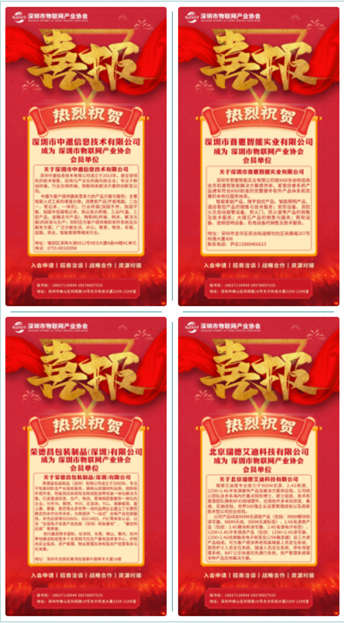 本月新增4家会员企业:深圳市中邈信息技术有限公司、北京瑞德艾迪科技有限公司、深圳市普惠智能实业有限公司、荣德昌包装制品(深圳)有限公司。