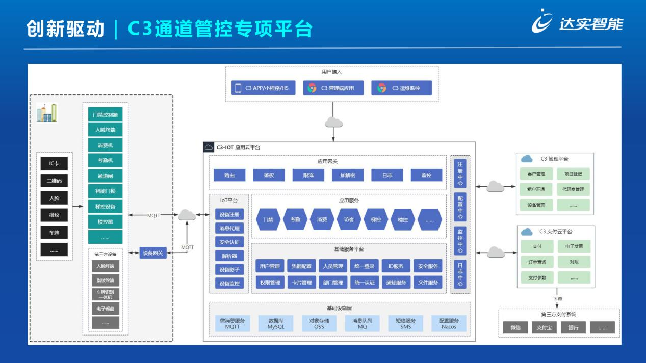 拥有自主知识产权的“智能卡一卡一密方法”、“车辆出入门库引导的方法以及车辆出入库引导系统”、“一种基于窄带物联网的蓝牙门禁系统及其使用方法”、“一种云门禁系统及其管理方法”、“红外对射装置及通道闸机”、“IC卡计费装置”、 "基于TCP/IP的C3一卡通系统”、“基于以太网的楼宇控制器”等发明专利和数十项软件著作权。